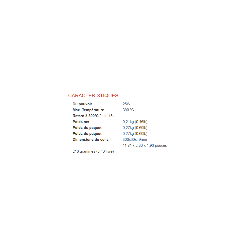 Ce fer à souder est fourni avec la panne thermorésistante R-10 D (0300905) et convient au soudage de composants de petite taille.